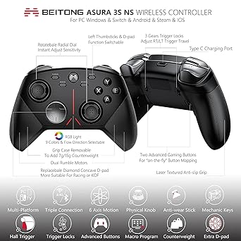 Experience gaming like never before with the BEITONG Asura 3S Wireless Gamepad! Adjustable sensitivity & modular design for ultimate control. Grab yours now!