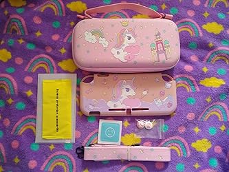 - š¦ćYou Can Getć1 x Pink Switch Lite Carrying Case; 1 x TPU Switch Lite Shell for Unicorn; 1 x HD Glass Screen Protector; 2 x Cute Thumb Grip Caps; 1 x Adjustable Shoulder Strap; and long-term friendly customer service. If you have any questions, please feel free to contact us.