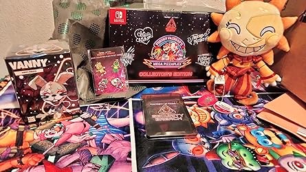 - Includes: 12in Sun and Moon Daycare Attendant Duo Plush, Vanny Vinyl Figure, Mr. Hippo Magnet, Plush Pin Set, SteelBook, Physical Copy of Five Nights at Freddy’s: Security Breach, Sticker Sheet, Mega Pizzaplex Box