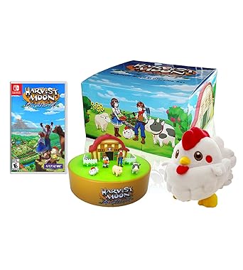 - Harvest Moon: One World Collector’s Edition includes Collector’s Box, Game, Diorama, and Chicken Plush