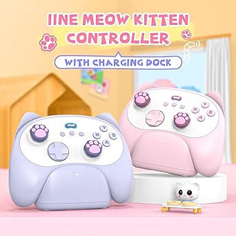 - 🐾 Adorable Kitten-Themed Design with Charging Dock – This cute cat paw controller features an ergonomic kitten shape, making gaming both comfortable and stylish. The included charging dock ensures effortless and convenient charging