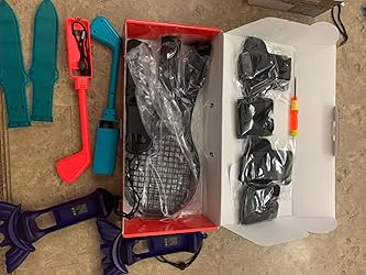 - 【2025 Switch Sports Accessories Bundle】:The nintendo switch accessories kit including 2 x golf clubs, 2 x tennis rackets, 2 x wrist straps&leg straps,2 x sword,2 x Joy-con Wrist Band,2 x Comfort Grip Case,and also comes with a nice packaging.Perfect switch accessories pack for the latest switch sports games:golf,tennis,badminton,soccer,volleyball,bowling,chambara etc.The nintendo switch sports accessories kit saves your money and time on searching varieties accessories.