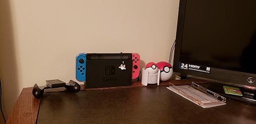 Una dock molto carina e ufficiale Nintendo. Visto al Gamestop e preso qui a prezzo più basso . Quando si mette in carica la pokeball emette un suono e si accende. Per metterla sulla dock c’è un adattatore da inserire nel vano posteriore dove c’è il plugin tipe c, che a sua volta si posa su due magneti inseriti nella dock. C’è un gancio che tiene la poke salda, e il coperchio del vano carica della ball si incorpora con l adattatore. Semplice carino e ben congegnato. Consigliato per gli amanti e collezionisti.