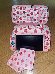- đăYou Can Getă1 x Pink Strawberry Carry Case; 1 x Pink Strawberry TPU Shell; 1 x Strawberry Game Case; 1 x Glass Screen Protector; 2 x Strawberry Thumb Grip Caps; 1 x Shoulder Strap; and long-term friendly customer service. If you have any questions, please feel free to contact us.