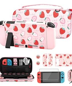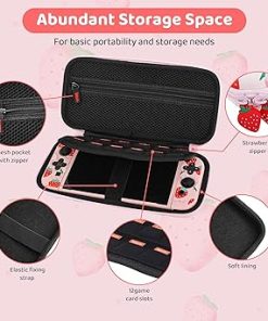 Pink Travel Case for Nintendo Switch with Strawberry Design and Accessories