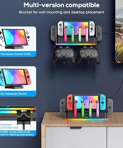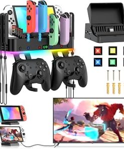 - 🎮【 An Ideal Accessories for Switch & Package】Switch dock organizer offers a variety of usage options. Mount it on the wall behind TV for a space-saving , or simply remove it from the mounting plate and use it as a desktop stand. You will get 1*Base Stand, 1*Wall Mounting Plate, 2*Pro Controller Hooks, 5*Screws, 4*Screw Fittings, 1*Level, 1*Type-C Cable,1*Manual. Please feel free to contact us if you have any question.