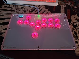 - Custom RGB Design:This is a transparent acrylic material with RGB lighting effect,an enlarged style arcade keyboard with 13 buttons, providing a comfortable feeling and allowing you to enjoy fighting games. Buyers can create their own skins to make the controller look cooler and more personalized